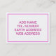 Cartão de visita elegante em branco com uma estrutura rosa. Clique no botão personalizar para alterar a posição do texto, bem como a cor e a fonte das letras.