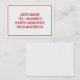 Cartão de visita elegante em branco com um quadro vermelho. Clique no botão personalizar para alterar a posição do texto, bem como a cor e a fonte das letras.