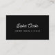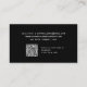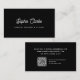 Estes cartões de visitas simples e modernos apresentam um fundo negro e escuro. O script branco retrô, porém moderno, juntamente com o texto simples em negrito contém todas as suas informações pessoais, enquanto um código QR torna a placa verificável.