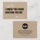 Uma placa de inserção divertida e moderna de marca comercial e embalagem para os clientes de obrigado para sua compra e oferecer uma promoção de código de desconto para seu próximo pedido. Na frente, um cartão de papel kraft com texto preto que diz "Eu sabia que você estava me esperando" e a palavra "Olá" em um roteiro escrito à mão em branco. Logotipos de mídia social e seu nome de usuário no final. No verso está o logotipo de marca centrado acima do texto preto no fundo do kraft agradecendo ao cliente e um código de desconto de 10% para compra futura. Endereço do site abaixo. Totalmente personalizável. ©Marisu Valencia