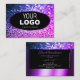 Faça uma impressão duradoura com este design de cartão de visita luxuoso e elegante, com um efeito brilhante de gradiente rosa e roxo, com um quadro nobre de decoração oval sobre fundo preto. Personalize facilmente esses cartões de visitas para sua marca e seu logotipo. Tudo o que veem é faux faux rhinestones e faux gold/prata, mas um impressão de qualidade ♡ desejo-vos muito prazer com este ponto. ♡ SEU FAVORITO ♡ luxo e suprimentos profissionais de negócios. ♡ www.zazzle.com/store/your_favorite ♡