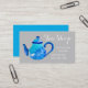 Um cartão de visita do estilo vintage bonito, adequado para um café - café móvel, café ou compro de chá especial. Este design de branco mostra uma ilustração de uma ilustração de uma aquarela de bule azul giro. A cor de fundo pode ser alterada de acordo com o seu gosto. Este cartão de visita é totalmente personalizável para incluir seus próprios detalhes pessoais.