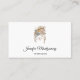 Cartões de visitas com um bonito buquê de flores em cores neutras de castanho, pêssego e laranja. Um apanhador de sonhos com penas adiciona um elegante talento místico.