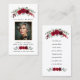 Elegant Burgundy Red Roses funeral prayer card with editable photo and text. Personalize easily via Template Objects in the Zazzle editor.