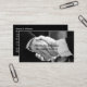 Cartão de visita profissional do Business Broker e marketing de design de modelo de de de de de de rede criado com um gráfico de pessoas de negócios batendo as mãos na frente com seu nome em destaque e seus contatos e detalhes de negócios organizados no lado do sacudir. Funciona perfeitamente para profissionais envolvidos em redes de negócios, vendas ou serviços de negócios, setor financeiro ou serviços de negócios.