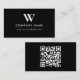 A simple and stylish business card monogram logo and scannable QR code website address design with black background. Customize the details and make it your own. An ideal design for business promotions, employee stationery, office decor, business marketing and advertising.