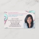 The back of the card offers a clean layout with matching corner accents and a designated space for a professional headshot, allowing potential clients to see the person behind the practice. All text fields are fully editable, so the title and contact details can be customized to fit your specific niche.