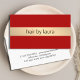 Modelo de cartão de negócios personalizável mínimo com fundo vermelho e fita falsa de ouro. Design elegante e minimalista. Perfeito para salão de beleza, cabeleireiro, cabeleireiro.