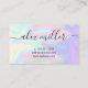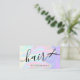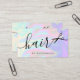 design de cartão de visita de cabeleireiro lindo, com textura holográfica colorida e fonte elegante de caligrafia.