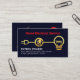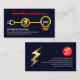 Um cobrir azul escuro apresenta um design de fiação elétrica de ouro criativo. Na parte superior da placa está o nome da empresa "Home Electrical Service", que você pode mudar com seu nome prestigiado e os detalhes de contato próximos à base. No verso, um relâmpago dourado é visto no lado esquerdo da placa. Na direção oposta está um logotipo vermelho do circuito doméstico, que você pode usar. Abaixo, está seu nome prestigiado, seus detalhes de contato e uma opção de legenda de slogan. Esta é uma carta criativa feita para os eletricistas usarem.