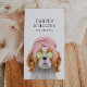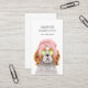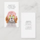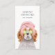 Cartão de visita de corte desenhado para ranhuras de cães com ilustração de um cão Charles King Spaniel a receber um tratamento termal com fatias de pepino e com faixa de cabeça cor-de-rosa.