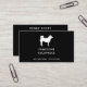 Um cartão de visita moderno e profissional para um andarilho de cães, uma babá de animais de estimação, cuidados diurnos de cães, formação de cães ou prestação de cuidados a animais. O cartão tem um design simples e minimalista que apresenta uma silhueta canina sobre fundo preto. Edite as modelos de texto para o seu próprio cartão de visita de serviços personalizados de animais de estimação.