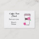 Um cartão bonito com uma xícara de café com uma tampa cor-de-rosa e sotaques de flor rosa. Personalize com todas as informações de sua empresa conforme desejar.