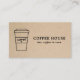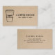 Cartão de visita de compro de café minimalista com um simples design com ilustração de uma xícara de café com coração sobre fundo de papel marrom. À direita está o seu nome comercial e slogan. A parte de trás tem suas informações de contato. O desenho bonito de uma xícara de café cria um logotipo pré-fabricado ou você pode substituí-lo pelo seu próprio logotipo.