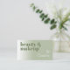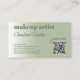 Bonita e elegante estilo minimalista de maquiagem artística cartão de visita. Luz contemporânea Tuscano sage cartão de visita verde colorido com uma moderna folhagem retrorreflectora e minimalista verde e sofisticada fonte branca elegante. Clique em 'Personalizar' para encontrar o modelo pronto para ser personalizado com seu nome comercial, profissão e informações de contato, texto e código QR exclusivos de sua escolha. Esta design única e bonito foi feita para aqueles que gostam de sofisticados designs fortes clássicos.