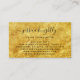 Cartão de visita de Textura Dourada de Swash de Script Elegante. Elegante, na moda profissional cartão de visita com nome de script de caligrafia de rico com alternância em preto sobre fundo de textura dourada). ALTERAÇÕES: Altere o estilo, cor, tamanho e posicionamento da fonte de texto em EDIT. ASSISTÊNCIA: para obter ajuda sobre a modificação do design, transferir o design para outro produto ou, se você quiser coordenar itens, entre em contato com o designer ANTES DE ENCOMENDAR através da guia MENSAGEM de Bate-papo Zazzle ou envie um email para makeitaboutyoustore@gmail.com.