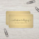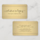 Faça uma primeira impressão memorável com um cartão de visita simples e elegante. Design apresenta uma tipografia de estilo manuscrito em na moda, fundo de folha de ouro falso e listras negras minimalistas modernas. Apresente suas informações de contato com estilo profissional de chic. Adequado para empresários freelance, pequenas empresas ou profissionais de escritório corporativo, este cartão simples e mínimo é uma tendência e eterno. Ele é mostrado aqui como um cartão de visita de cabeleireiro/maquiador, mas é simples de personalizar para qualquer profissão.