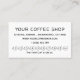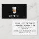 Simples cartão de visita de cafeteria moderna com lealdade. Design apresentando um simples ''café'' em branco e retirando uma xícara de café sobre fundo preto na frente, endereço e recompensas de lealdade na parte de trás. Para editar este modelo, clique em personalizar mais.