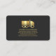 Uma linha falsa de ouro demarca uma camada superior de cinza escura contra seu equivalente preto abaixo. No topo está um logotipo falso de caminhão em ouro que você pode usar com seu nome comercial e uma opção de legenda de slogan embaixo. ; Você pode mudar as observações de legenda para o slogan para adequá-las às suas próprias necessidades. Seu nome prestigioso e cargo estão logo abaixo da linha dourada com os detalhes de contato colocados no canto inferior direito. No verso, em uma cobrir escura, o logotipo do caminhão de ouro está no topo, seguido do seu prestigiado nome, dos contatos e de uma opção de slogan para divulgar seus serviços. Todas as letras estão em ouro falso. Um cartão de excelente para todos, especialmente para os transportes.
