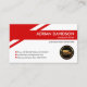 No canto superior direito da coluna vermelha, está o seu nome prestigiado e o cargo em branco. Logo abaixo, na camada branca está uma opção de legenda de slogan para que você divulgue seus serviços. A isto se segue um logotipo de caminhão de ouro que você pode usar com os detalhes do contato na direção oposta.