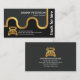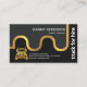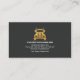 No verso, em uma cobrir de cinza, o logotipo dourado está no topo, seguido do seu nome prestigiado, dos contatos e de um slogan para anunciar seus serviços.