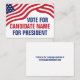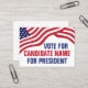 Cartão de visita personalizável do candidato a campanha política com a bandeira americana em cima de seu texto em vermelho, branco e azul. Acrescente a sua escolha para presidente ou outro cargo político na eleição de 2024. Texto personalizado em negrito.