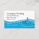 Modelo do cartão de empresa de serviços do encanamento em um design simples com água na disposição que do fundo e do texto você pode personalizar para um contratante do encanamento, no serviço do filtro de água, ou no canalizador independente.