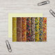 Este cartão comercial de artista apresenta todos os tipos de doces dispostos em tubos verticais em todas as cores do arco-íris (amarelo, chocolate, castanho, laranja, vermelho, verde, azul, branco e ouro) para formar uma composição de abstrato de água para a boca.