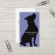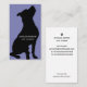 Cartão de visita de treino simples e moderno para cães apresenta uma placa roxa com silhueta preta para cães.