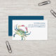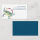 Este único cartão de visita costeiro apresenta meu caranguejo-d'água pintado à mão em tons vibrantes de verde, azul e turquesa com garras vermelhas, contra suas informações de contato personalizadas. Perfeito para cartões de visitas de praia ou qualquer marca temática oceânica, o verso mostra um design azul marinho complementar para um visual polido e profissional. Ideal para uma butique, chef, restaurante de frutos do mar, negócios de barco ou qualquer marca de inspiração náutica, esses cartões de visitas de vida marinha combinam estilo com funcionalidade. Conheça mais designs de marketing profissionais de Victoria Grigaliunas em www.zazzle.com/dotellabelle