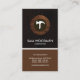 Um design que tenha duas colunas elegantes. Na camada superior, o cobrir é um design de madeira da grão ao lado de um cartaz de madeira da madeira circular simples com um martelo branco subjacente. Seus nome e posição sentam-se abaixo deste. Uma linha de delimitação branca introdu-lo a uma coluna marrom que abrigue todos os detalhes do cartão.