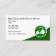 Simples cartões de visitas modernos para um carrinho de golfe ou serviço de carro de golfe criado com um emblema de golfe moderno que você pode usar em nossas cartas e personalizar o layout para fazer deste seu cartão de chamada padrão para entregar aos clientes um carro de golfe ou um negociante de carrinho de golfe que também presta serviços e peças.
