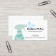 Um belo cartão de visita de limpeza de casas moderno com um logótipo de garrafa de spray decorada de folha verde clara. Personalize acrescentando o nome da empregada doméstica ou empregada profissional. Perfeito para serviços de limpeza.
