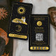 Um belo cartão de visita de tarô celeste preto e ouro e um tigre luar. Uma maneira simples e profissional de apresentar sua empresa. Personalize o logotipo comercial e o código QR e crie seu próprio cartão de visita. Ícones das mídias sociais incluídos nesta cartão de visita. Cartão de visita ideal para leitores de tarô e curadores de energia.