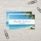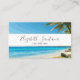 Traga uma vibração tropical para a sua imagem profissional com esta cena de praia cartão de visita. Apresentando céus azuis, areias brancas, água azul cristalina e palmeiras exuberantes, a frente inclui uma faixa branca limpa para seu nome e título personalizáveis. A parte traseira mostra a mesma paisagem serena com um quadrado branco para seus detalhes de contato — número de telefone, email, endereço e site. Perfeito para profissionais que querem calma, relaxar e convidar design.