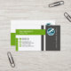 Um design simples centrado em colunas retangulares. No verde a coluna senta seus nome e posição. Diretamente abaixo, há um retângulo verde vertical fino que acompanhe botões sociais verdes do ícone para seus detalhes do cartão. Na parede direita, há um grande retângulo cinzento que tenha o logotipo e seu nome da empresa invertido pelo lado. No verso, o cartão tem duas parcelas. A parte branca superior tem o logotipo e o nome da empresa. A coluna verde diretamente debaixo de tem os detalhes do negócio junto com sua opção do tagline do slogan. Se você decide transferir arquivos pela rede uma foto em vez de um logotipo, as dimensões são o pix 1.000 x 1.000. Este design tem lotes da opção que permite que você personalize o cartão. Este cartão seria grande especialmente para as cabeças das empresas ou do próximo chefe em você.