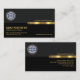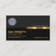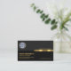 No verso, o mesmo design é usado com o logotipo no canto superior e o nome da empresa logo acima da faixa de ouro. A coluna preta abaixo tem seus detalhes de contato e sua opção de slogan para divulgar seus serviços.