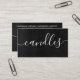 Estas cartões de visitas para velas feitas à mão e cera de soja derrete parecem ter uma textura pequena enquanto o escrevendo se senta sobre uma imagem de quadro negro, dando-lhe um olhar clássico.