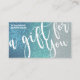 Este é o perfeito cartão de visita de certificado de presente para uma moda, na moda, menina, e empresária moderna. Este design apresenta uma típica tipografia de pincel branco manuscrito em um falso azul ceruliano impresso em verde-azul-lacrimejo em um gradiente glamouroso e chico brilhante brilhando brilhante brilho. É a maneira perfeita de permitir que seus clientes comprar um presente para sua família e amigos e, ao mesmo tempo, promova sua empresa. ***NOTA DE DESIGN IMPORTANTE: Para qualquer solicitação de design personalizada, como solicitações de correspondência de produtos, alterações de cor, mudanças de posicionamento ou qualquer outra solicitação de alteração, clique no botão "CONTACT" ou envie um e-mail ao designer diretamente em lafemme.art@gmail.com. Você pode até enviar um e-mail para ela solicitando um design completamente personalizado e novo.