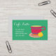 Um cartão de visita bonitinho de estilo moderno adequado para um café - café móvel, café ou compro de chá. Esta design mostra uma ilustração de um estilo moderno de uma xícara de chá simples e giro com chá de limão contra fundo de chá. A cor de fundo pode ser alterada de acordo com o seu gosto. Este cartão de visita é totalmente personalizável para incluir seus próprios detalhes pessoais.