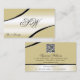 Mostre elegância e inovação com este modelo de cartão de negócios clássico. A design apresenta cores de champanhe brilhantes em bege com bonito linhas curvas de decoração prateada em preto. Personalize facilmente este cartão de visita para a sua marca e o seu código qr. Tudo que você vê é uma folha de papel suja, mas uma design de impressão de qualidade. ♡ pelo SEU FAVORITO - designs :-) Fornecimentos comerciais modernos e profissionais. ♡ muito prazer com este ponto. ♡ www.zazzle.com/store/your_favorite ♡ www.zazzle.com/store/favorite_markeplies ♡