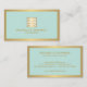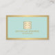 Um emblema de chave grego dourado metálico falso é combinado com seu nome ou nome comercial para um logotipo de chic neste modelo de cartão de negócios de designer. Colocada sobre um fundo de menta para uma estética de safra. © 1201AM CREATIVE