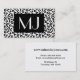 Cartão de visita em uma impressão animal minimalista em padrão chita - manchas em preto, em fundo branco, com monograma