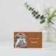 Um fundo de cor castanho chocolate. Personalize e adicione seu título, nome/nome comercial e texto na frente. Texto branco. Um quadro fotográfico em forma de arco. Anterior: Modelos para o seu nome, título, número de telefone, correio e endereço do Web site, o seu próprio código QR para o Web site ou conta de suporte social. Ícones/conta do Facebook e Instagram.
