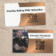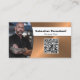 O falso cobre polido destaca o fundo deste design de cartão de visita que apresenta um espaço reservado para foto à esquerda com o nome e título do modelo à direita. O verso inclui um design coordenado e cores com campos de texto para o nome e detalhes da empresa. Substitua a foto do espaço reservado pela sua fotografia no formato vertical e substitua o código QR pelo seu. Preencha os campos do modelo ou clique em personalizar para selecionar um estilo de fonte, tamanho e cor de sua preferência. A foto do espaço reservado é cortesia de pexels.com.