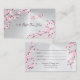 Este cartão de presente profissional apresenta galhos cor-de-rosa com flores de cereja num fundo falso de folha prateada. Adequação para maquiadores, spa, paisagismo, planejadores de casamento, planejadores de eventos, cosmetólogos, salão de beleza... Cartão de visita correspondente e outros produtos de escritório disponíveis.
