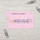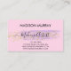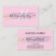 Este cartão de visita de moda tem um fundo cor-de-rosa pincelado, e uma faixa de pincel púrpura lilás de pincel de pincel com confete de brilho dourado horizontalmente no meio em ambos os lados. Também é uma grande inicial de monograma branco na frente e seu nome de cheio em um elegante roteiro com letra de mão. Personalize facilmente este cartão de visita, adicionando o nome do cheio, o monograma, o título do cargo e os detalhes de contato. Clique em "personalizar mais" para alterar a cor do texto e o estilo e tamanho da fonte. Esta cartão de visita moderna é perfeita para um artista de maquiagem, cabeleireiro, ou qualquer chefe, querida!
