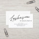 Minimalista tomou partido cartão de visita para um artista do chicote ou um técnico do chicote dos chicotes escritos em um roteiro fino simples da escova com os chicotes que ventilam para fora da última letra. Adicione seu nome e contacte a informação em letras modernas lisas.