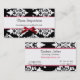 O cartão de visita preto e branco elegante do damasco, com um cetim vermelho que olha o arco e a beira vermelha acentua a decoração da parte dianteira. Personalize este cartão de visita impressionante para o senhor mesmo ou empresa mudando o texto, estilo de pia batismal do texto, cor, mesmo adicione e suprima de campos a suas necessidades.