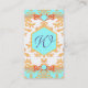 Cartão De Visita Chique elegante do damasco do Aqua, da laranja e